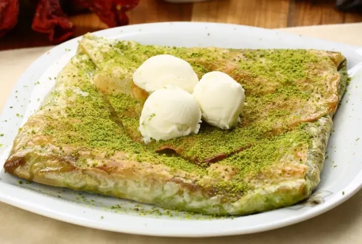 Üzeri: Meyve sosu (çilek, frambuaz vb.) veya çikolata